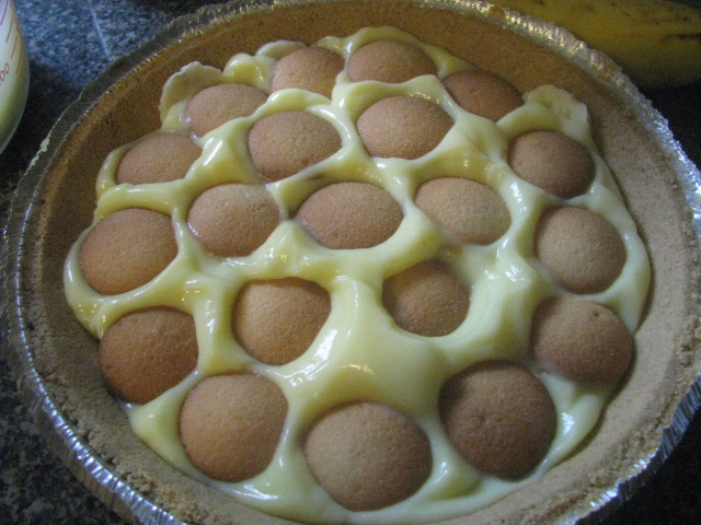 HOW TO MAKE A SIMPLE NORTH AMERICAN SOUTHERN BANANA PUDDING PIE IN A GRAHAM CRACKER READY MADE PIE CRUST WITH BUD’S BEST COOKIES BITE SIZE VANILLA WAFERS