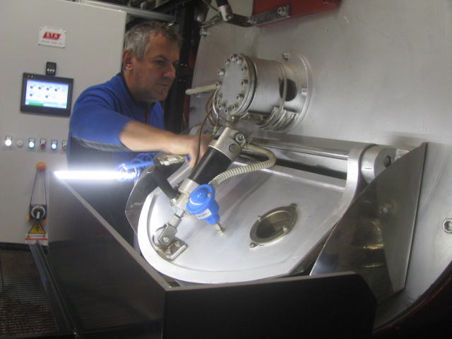 Checking for the coffee beans to be roasted perfectly at Bontadi in Rovereto – Luca Fachinelli, Bontadi’s Master Coffee Roaster and Manager