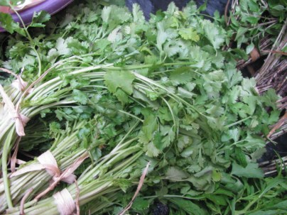 1/8 of a bunch of fresh stemless cilantro, coarsely chopped (in Mexican Mole Negro paste is prepared with fresh leaves of Yerba Santa)