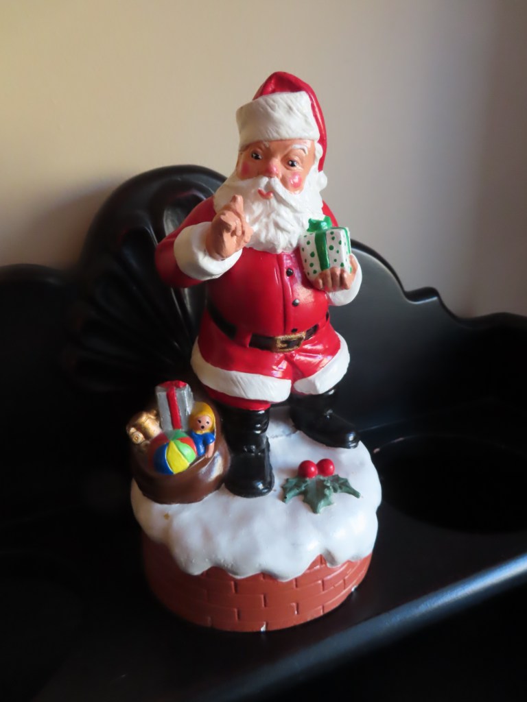 On the first day of Christmas my Pennsylvanian love gave to me, one little Santa with a big bag of toys and a white green speckled gift parcel for me…