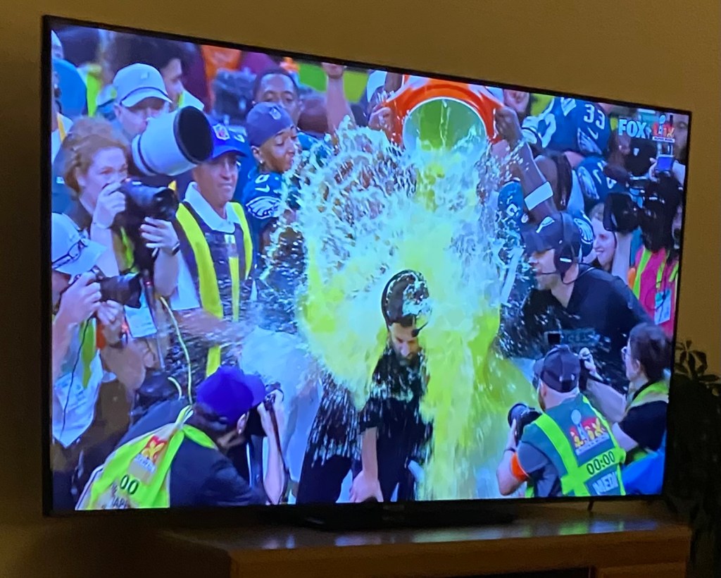One of the most important American football events took place on Sunday, February 9, 2025 in New Orleans, Louisiana. The final score was Philadelphia Eagles with 40 points and Kansas Chiefs with 22 points. Fans of either side cried, booed or celebrated. Food of choice for many Americans included chicken wings, tortilla chips, guacamole, ribs, coleslaw, chicken enchiladas covered with green chile sauce. Favorite drinks were lime-flavored “Margaritas” spiked with tequila, light beer and colored sparkling fruit waters. Winners even poured Gatorade over the Philadelphia Eagles’ head-coach Nick Sirianni. The smiling young man took the liquid in stride and thanked the Lord for it. Many celebrity bystanders, fans and guests took sides; they clapped, jumped for joy or hid and were booed. Even the U.S. President attended the game. It was the first time ever for a sitting President. He was keeping his fingers crossed for his favorite team. Who knows which team?!