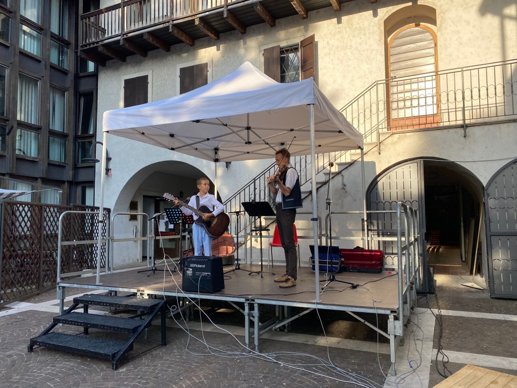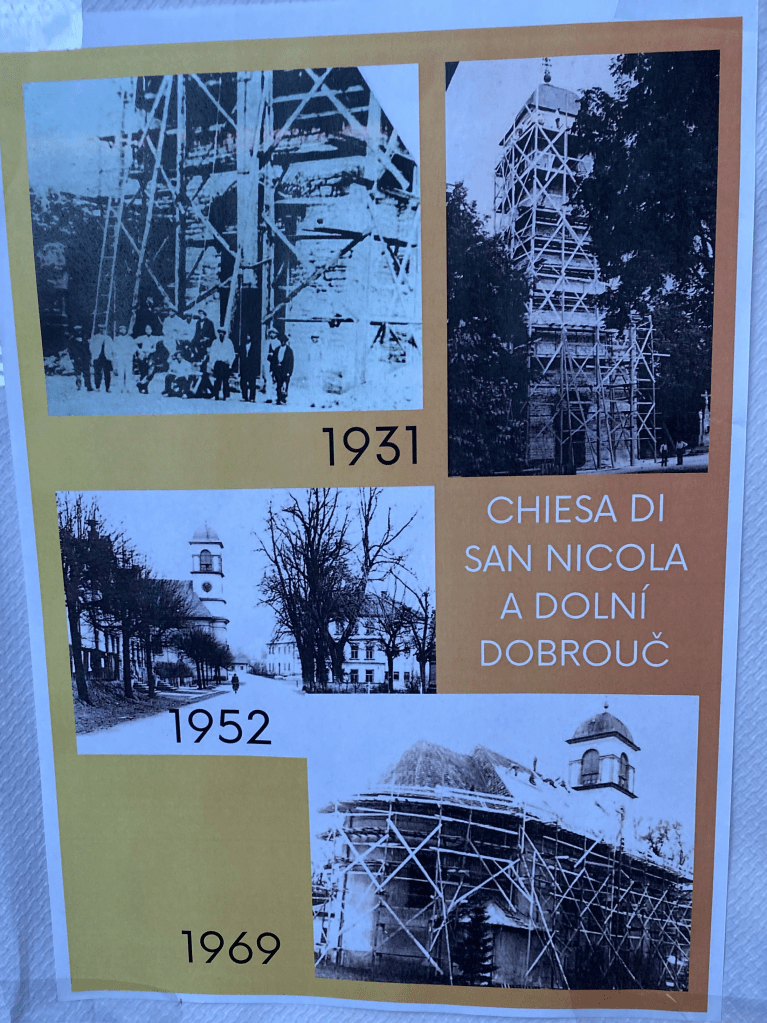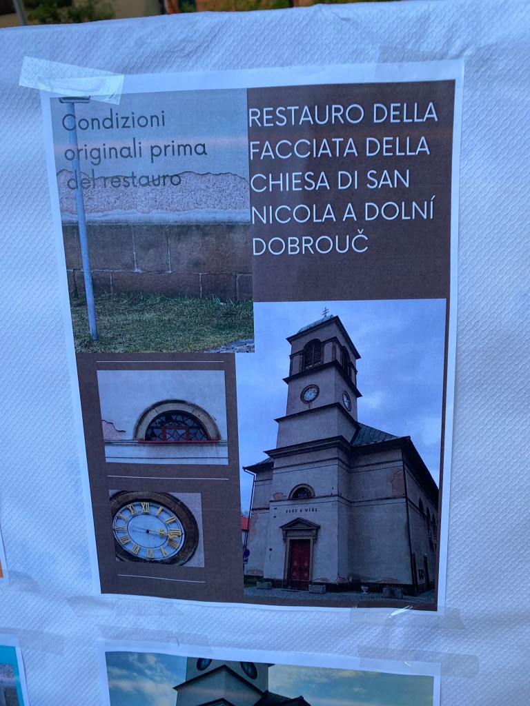 More visits from Dolni Dobrouc followed in 1998 and, in 1999 in Rovereto, a Peace Soccer Tournament took place in Rovereto, followed by an Alpini dedication of a monument to all those fallen during both wars. In 2000, a new visit to Dolni Dobrouc uncovered a tombstone dedicated to a 4-month-old child. The child died in 1918 shortly before Marco’s refugees returned home. In 2001 a visit of citizens of Dolni Dobrouc to Marco preceded a visit to Dolni Dobrouc of the Marco Fire Brigade. In 2002 Czech scouts and both town’s Mayors celebrated Peace and Friendship and a visit to the brand new MART Art Center of Rovereto. In 2003 a group of young people of both townships stood quiet listening to Rovereto Bell of Peace. Since then many events and visits between Dolni Dobrouc and Marco locals followed. And a couple of days ago, on July 25, 26, and 27, an event took place in Marco. It included a fundraiser to help refurbish the old Saint Nikolas Church of Dolni Dobrouc. There was a lot of Czech food and Czech beer. Italian juices, wine, and “grappa” were served. People enjoyed fiddle, guitar, and accordion playing. There was dancing, singing, chatting, and speaking about history and peace.